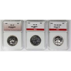 1955, GEM BU BGC GRADED, FULL BELL LINES, 1956 SUPERB BU WHSG GRADED, 1958 SUPERB PROOF CAMEO WHSG GRADED. ESTIMATE: $150-$200