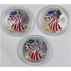 THREE COLORIZED AMERICAN SILVER EAGLES109 - THREE COLORIZED AMERICAN SILVER EAGLES