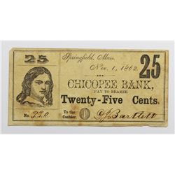 TWENTY FIVE CENT FRACTIONAL. SPRINGFIELD, MASSACHUSETTS. VF. ESTIMATE: $50-$75