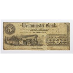 1852 $5 RARE WESTMINSTER BANK169 - 1852 $5 RARE WESTMINSTER BANK