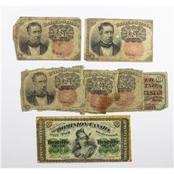 LOW GRADE (5) F1264, (1) F1257 AND (1) DOMINION OF CANADA TWENTY FIVE CENT. ESTIMATE: $80-$100