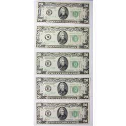 LOT OF 5 $20 FEDERAL RESERVE NOTES 1934 C188 - LOT OF 5 $20 FEDERAL RESERVE NOTES 1934 C