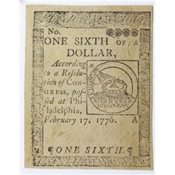 2/17/1776 $1/6 CONTINENTAL CURRENCY192 - 2/17/1776 $1/6 CONTINENTAL CURRENCY
