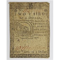 2/17/1776 $2/3 CONTINENTAL CURRENCY195 - 2/17/1776 $2/3 CONTINENTAL CURRENCY