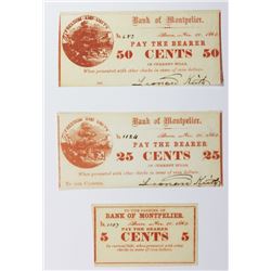 1862 THREE PIECE LOT BANK OF MONTPELIER, VERMONT197 - 1862 THREE PIECE LOT BANK OF MONTPELIER, VERMONT