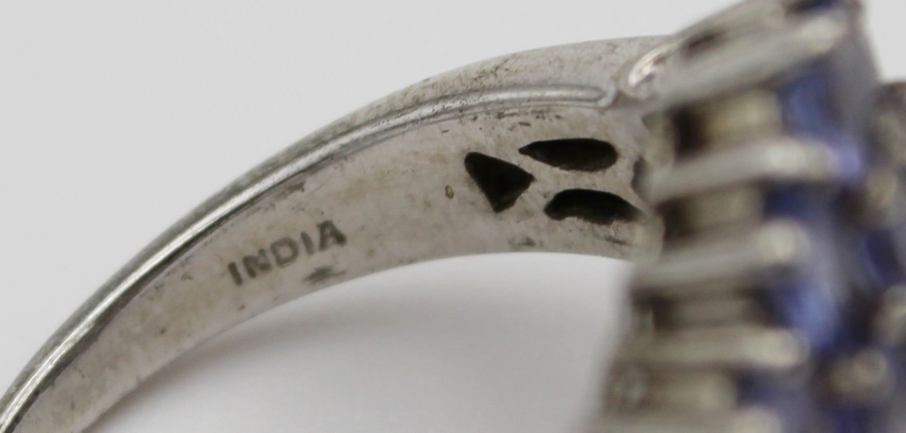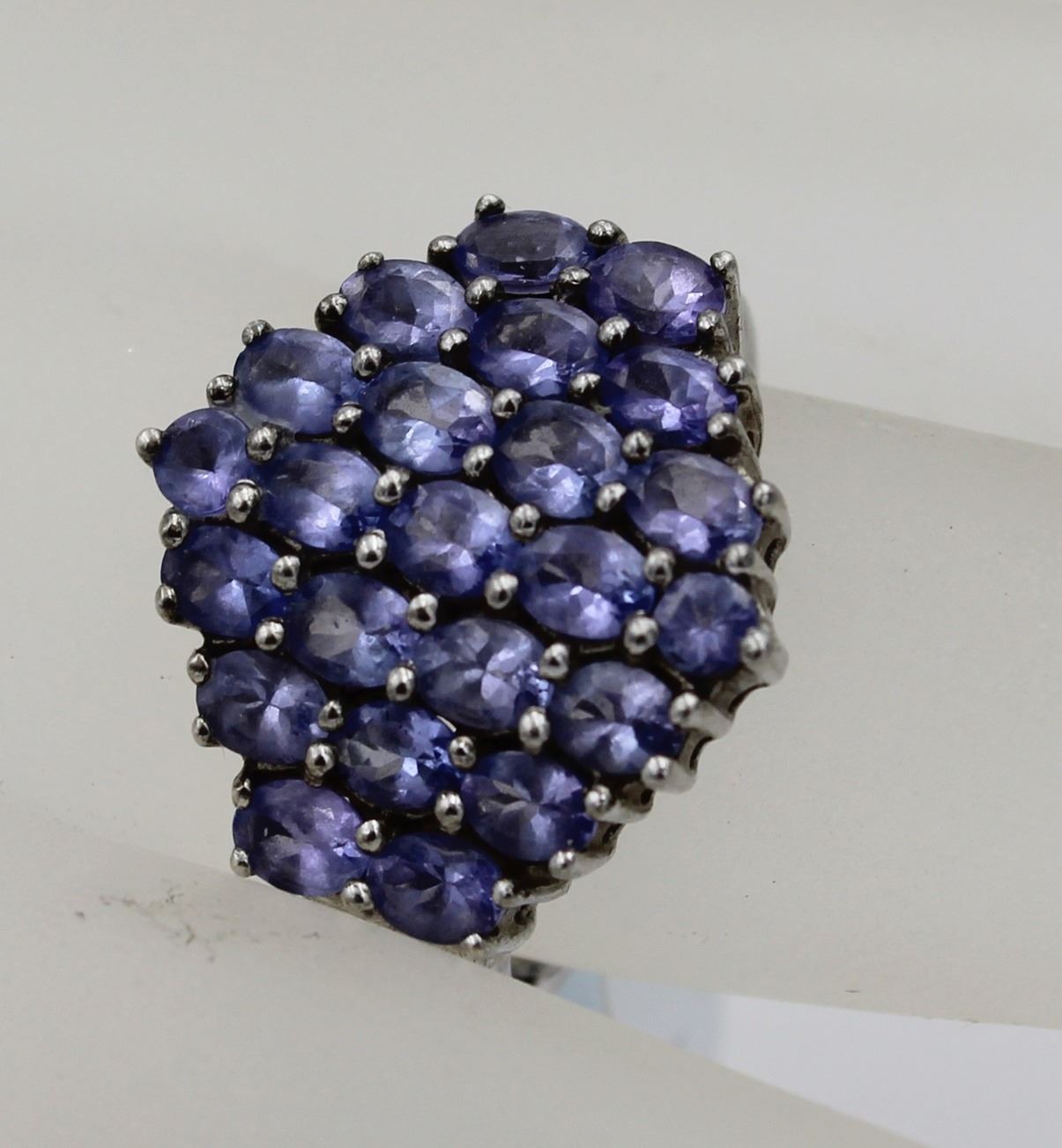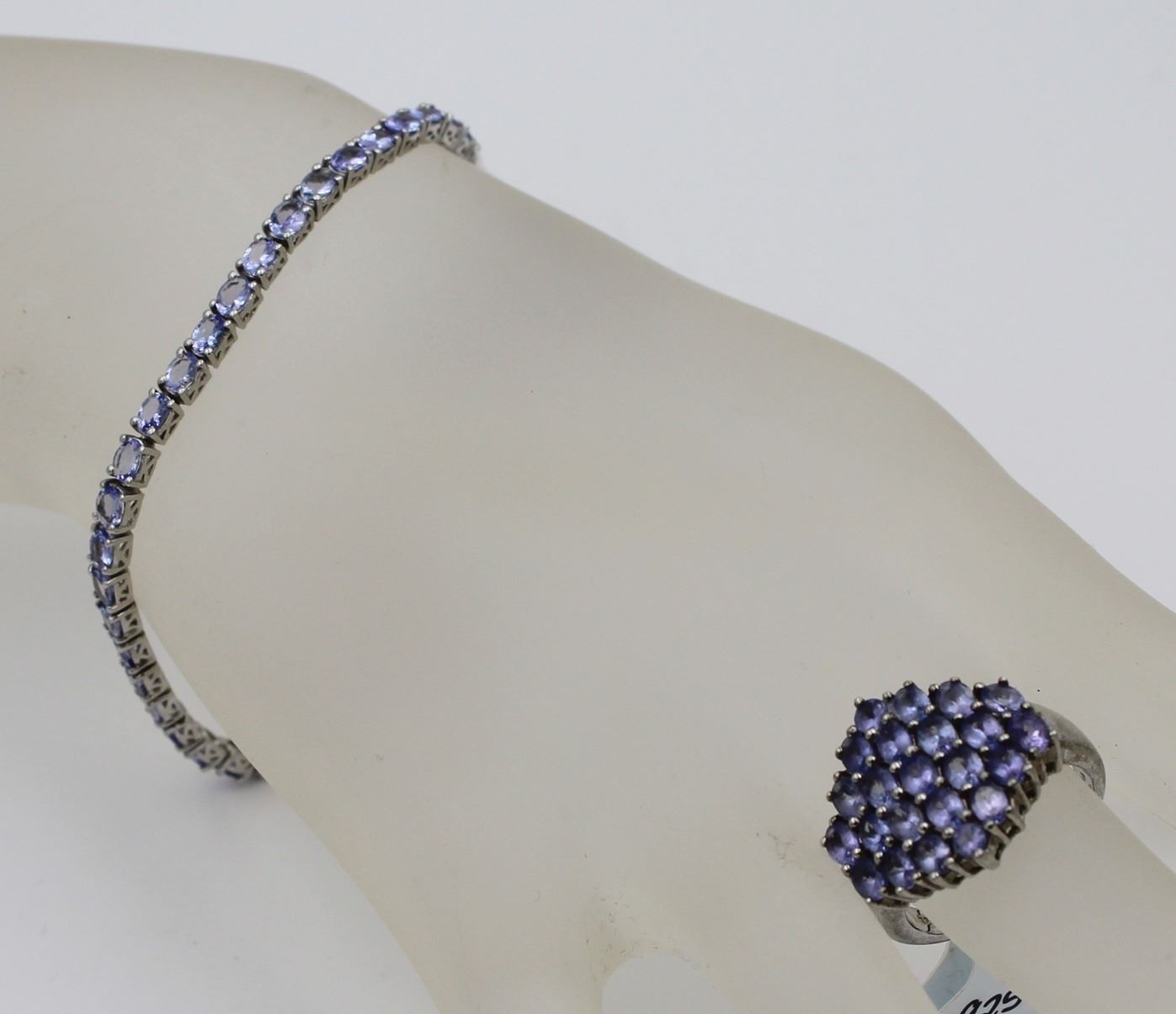 TANZANITE COLORED STERLING SILVER BRACELET AND RING SET. BEAUTIFUL TANZANITE CLUSTER RING WITH OVER 20 STONES!!!! BRACELET IS 8" LONG. PRE-OWNED. 15.6 GRAMS TOTAL. ESTIMATE: $75-$100