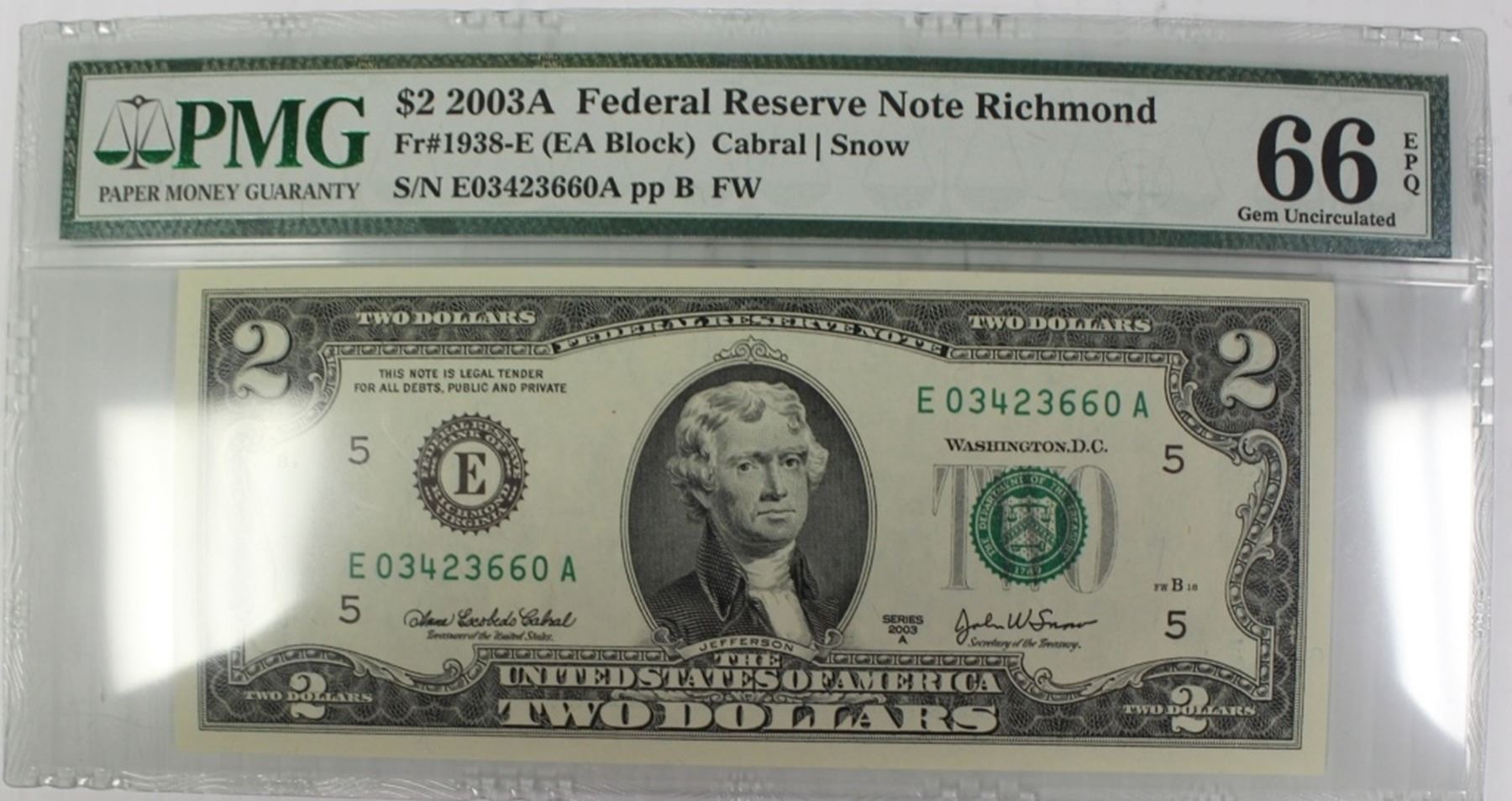 FR 1938E PMG MS66 EPQ. ESTIMATE: $250-$300