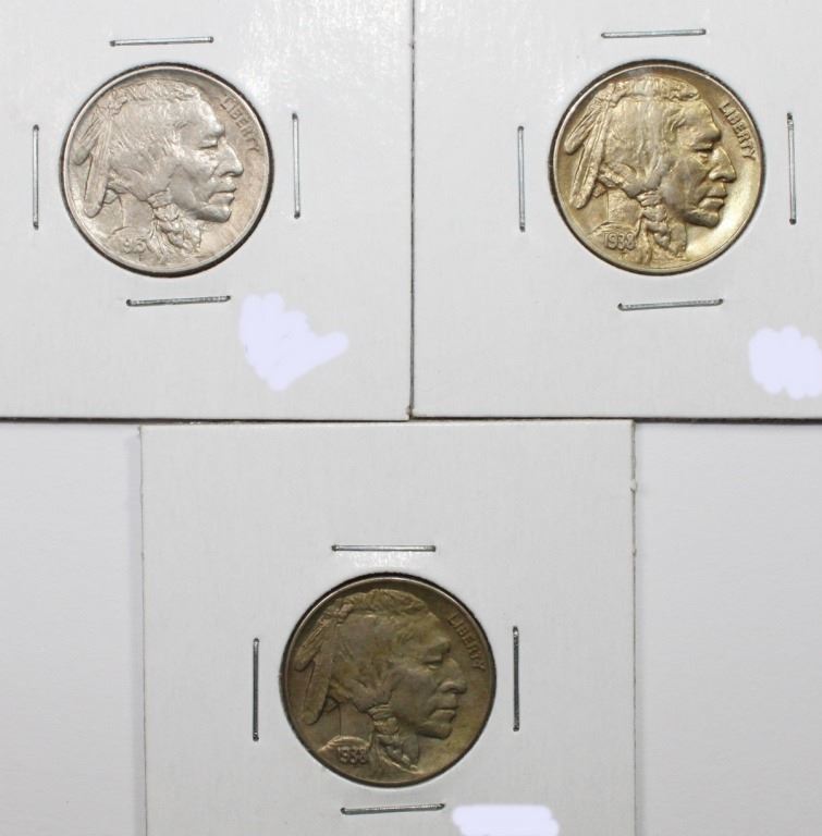 1938-D; 1913 TYPE 2 BU; AND 1938-D BU. ESTIMATE: $$150-$200