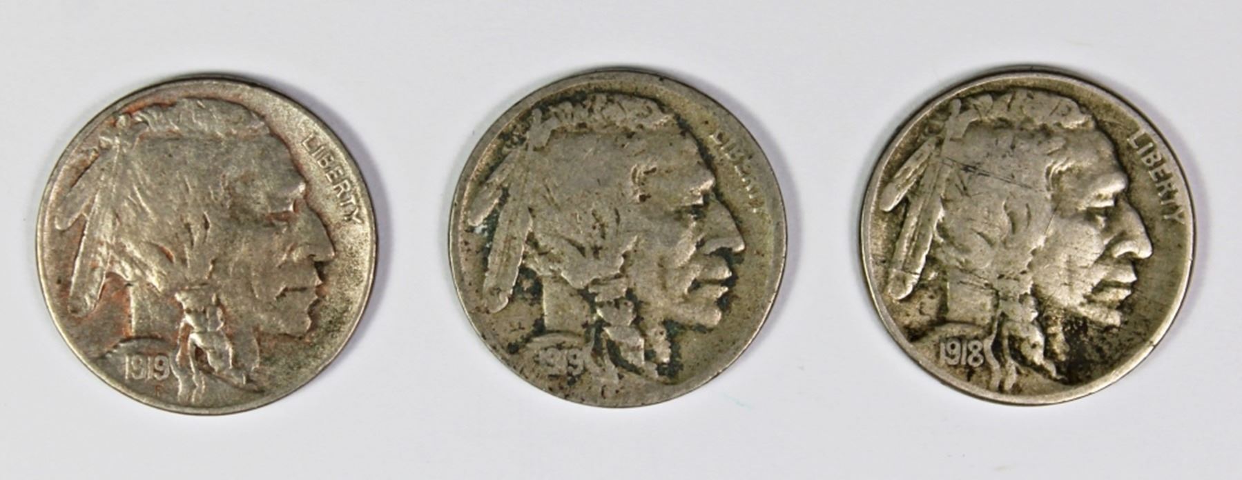 1918-S FINE, 1919 XF, AND 1919-D VG-F. ESTIMATE: $100-$125