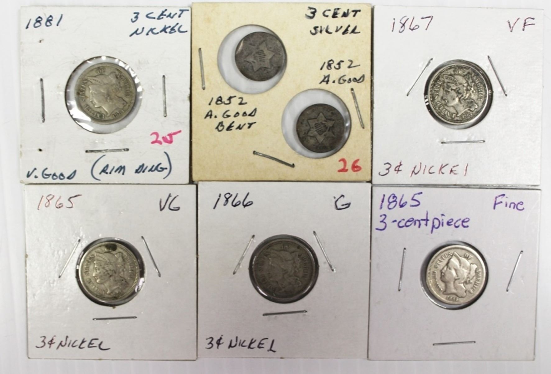 (2) 1852-AG, (2) 1865 VG, 1866 VG, 1867 VF, 1881 VG. ESTIMATE: $85-$125