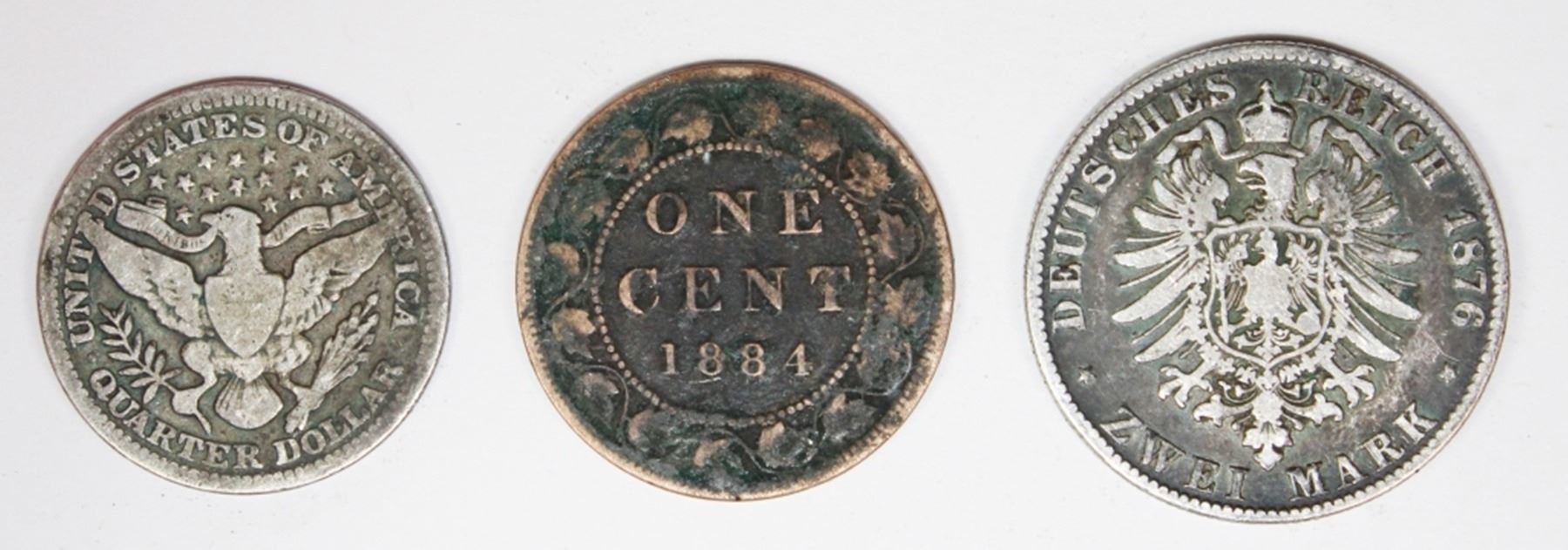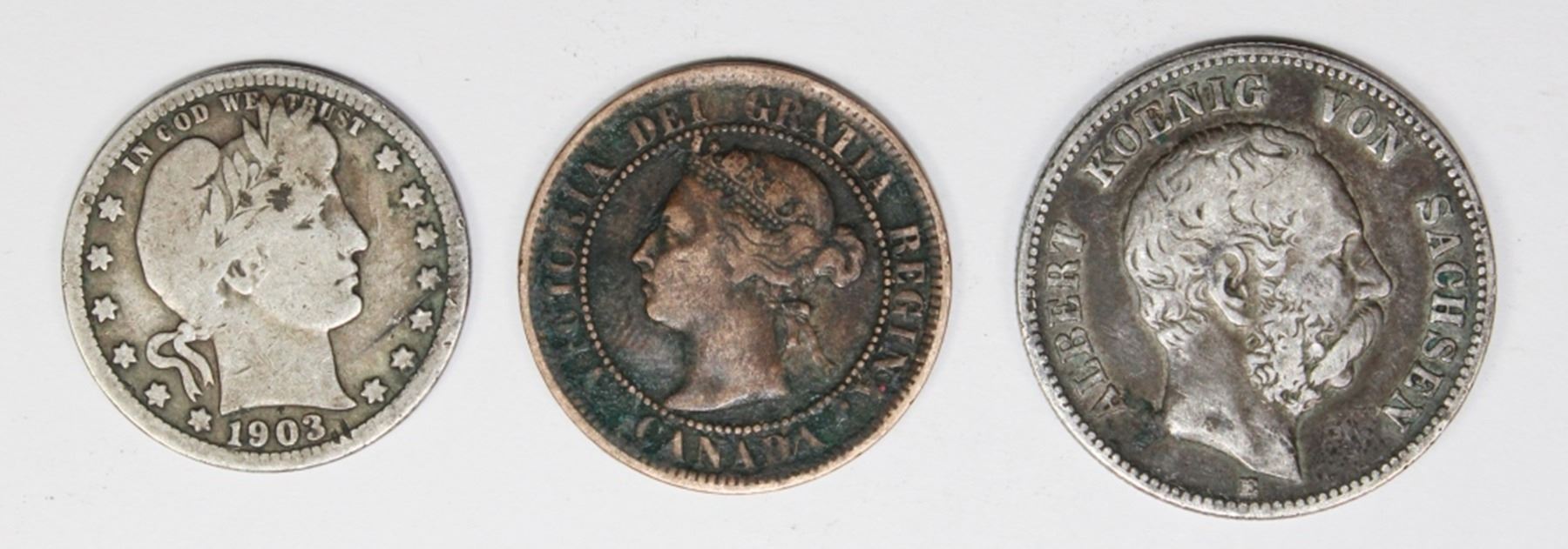 1876 ZWEI MARK ALBERT KOENIG VON SACHSEN NICE COIN! 1884 CANADA CENT AND 1903 QUARTER VG. ESTIMATE: $85-$125