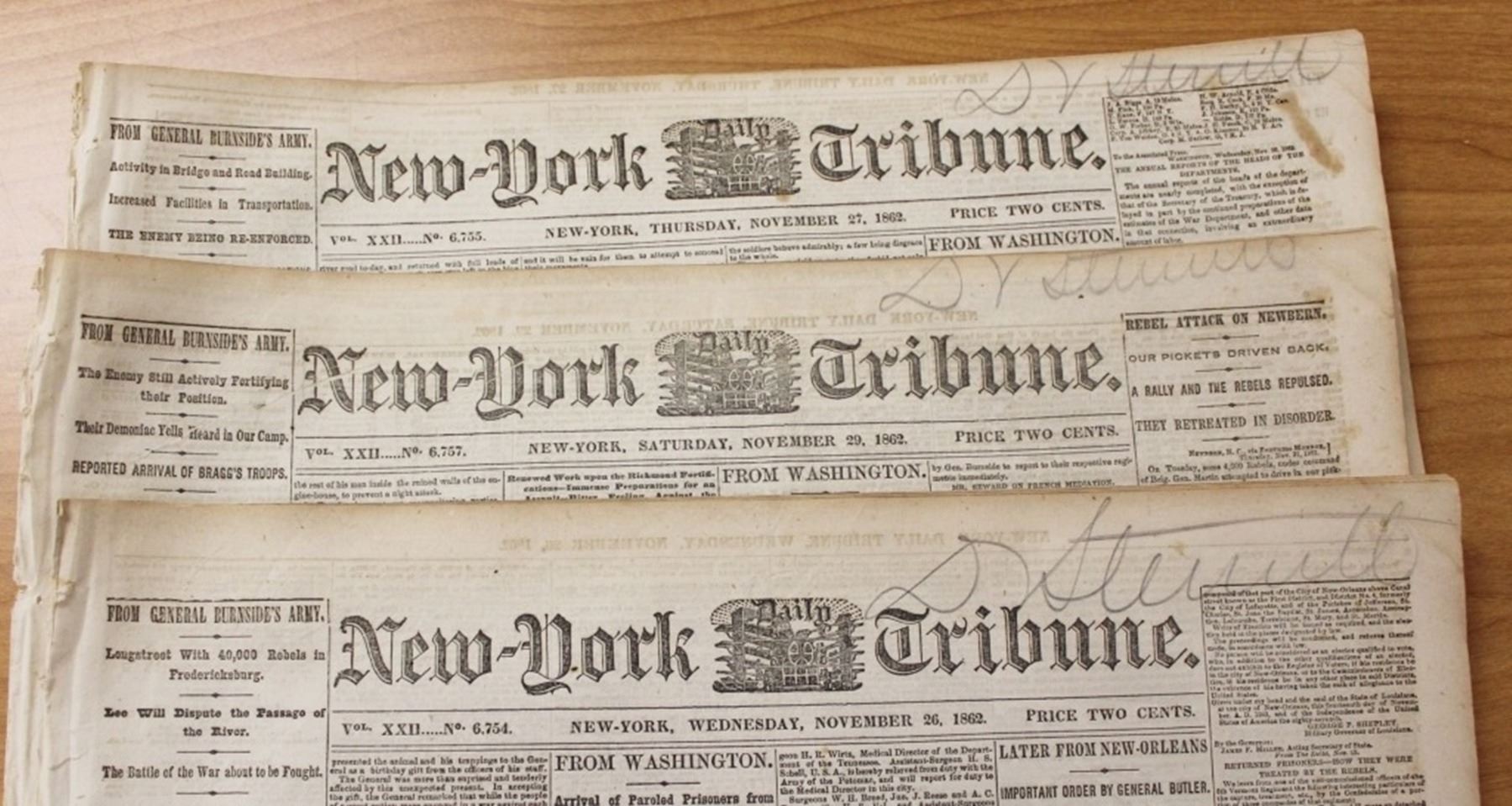 1861-1865. NEW YORK TRIBUNE, 100% AUTHENTIC AND ORIGINAL. WHAT A SUPER CONTENT TO READ! ESTIMATE: $150-$200