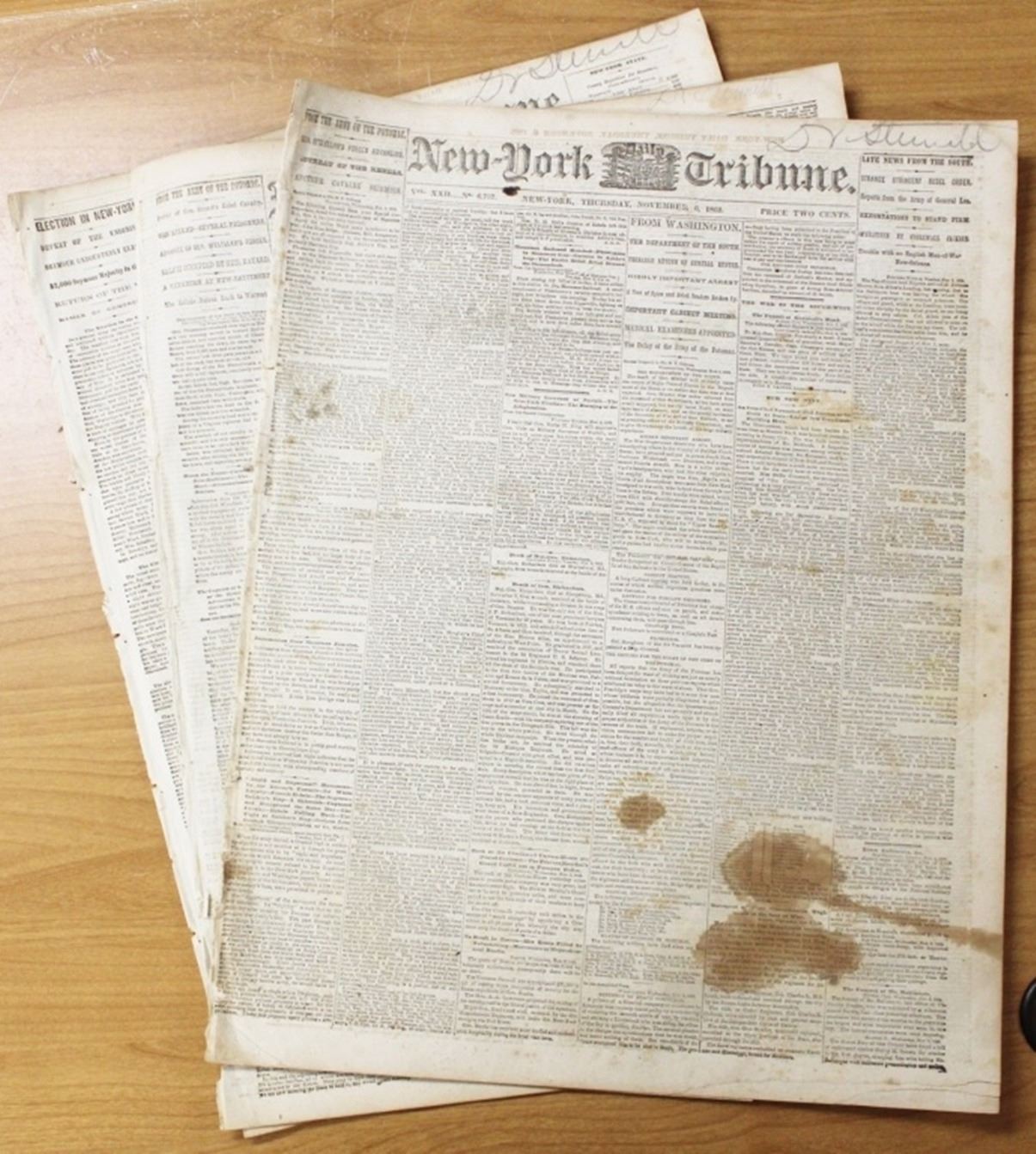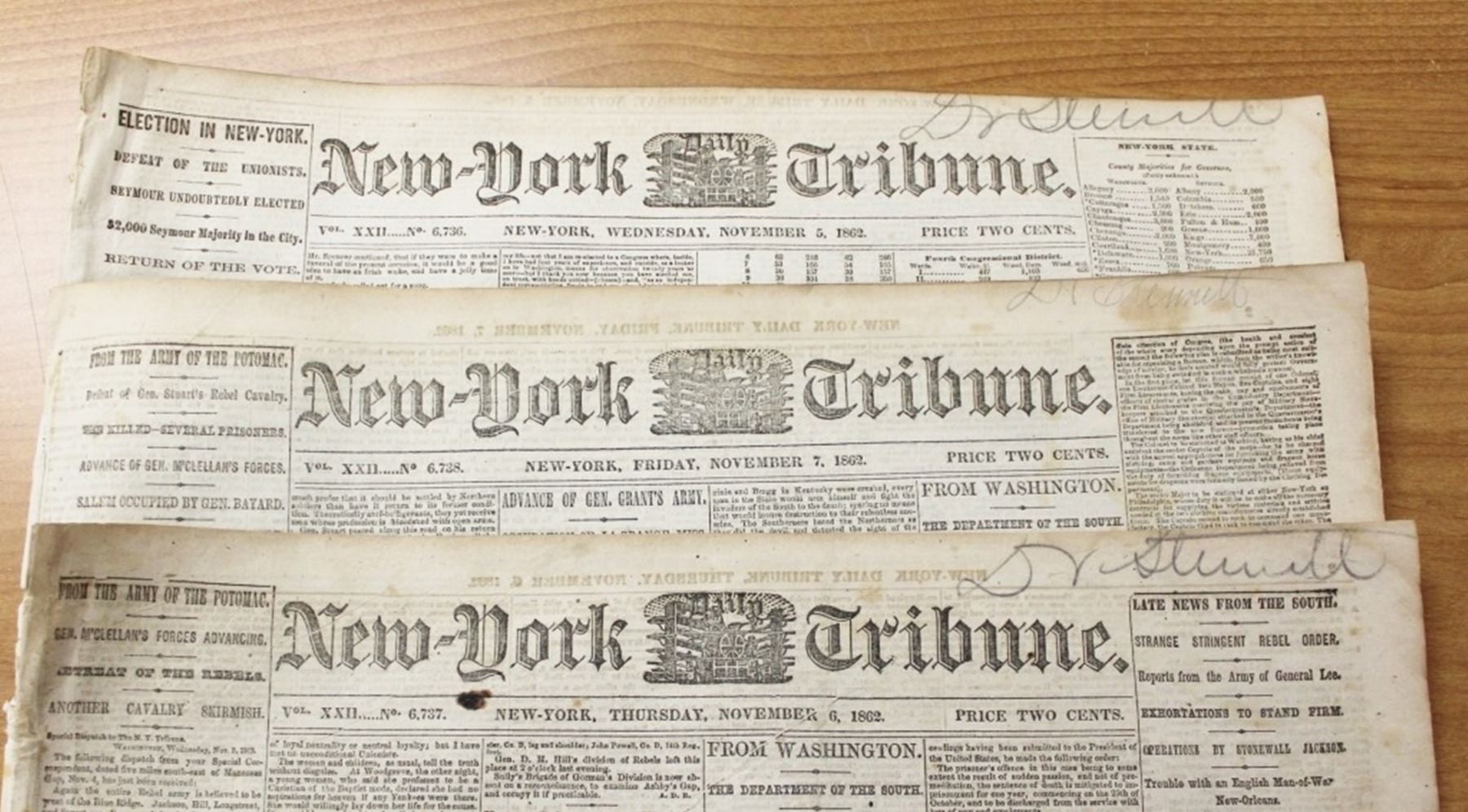 1861-1865. NEW YORK TRIBUNE, 100% AUTHENTIC AND ORIGINAL. WHAT A SUPER CONTENT TO READ! ESTIMATE: $150-$200