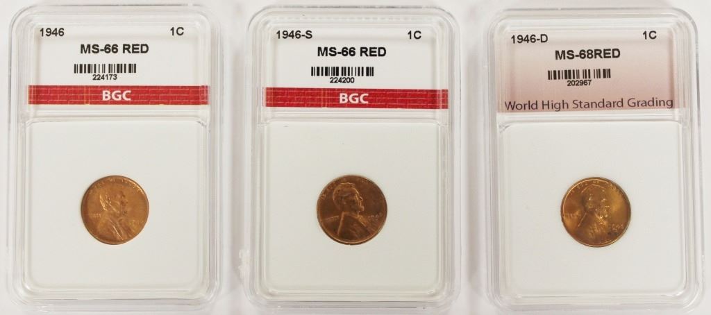 1946 BGC GRADED, 1946-D WHSG GRADED, AND 1946-S BGC GRADED.. ESTIMATE: $300-$350