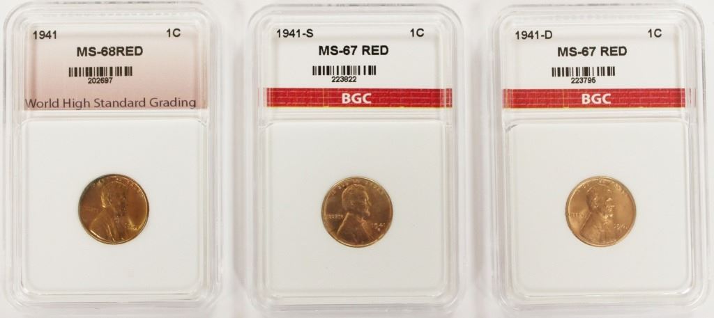 1941 WHSG GRADED, 1941-D BGC GRADED, AND 1941-S BGC GRADED. ESTIMATE: $300-$350