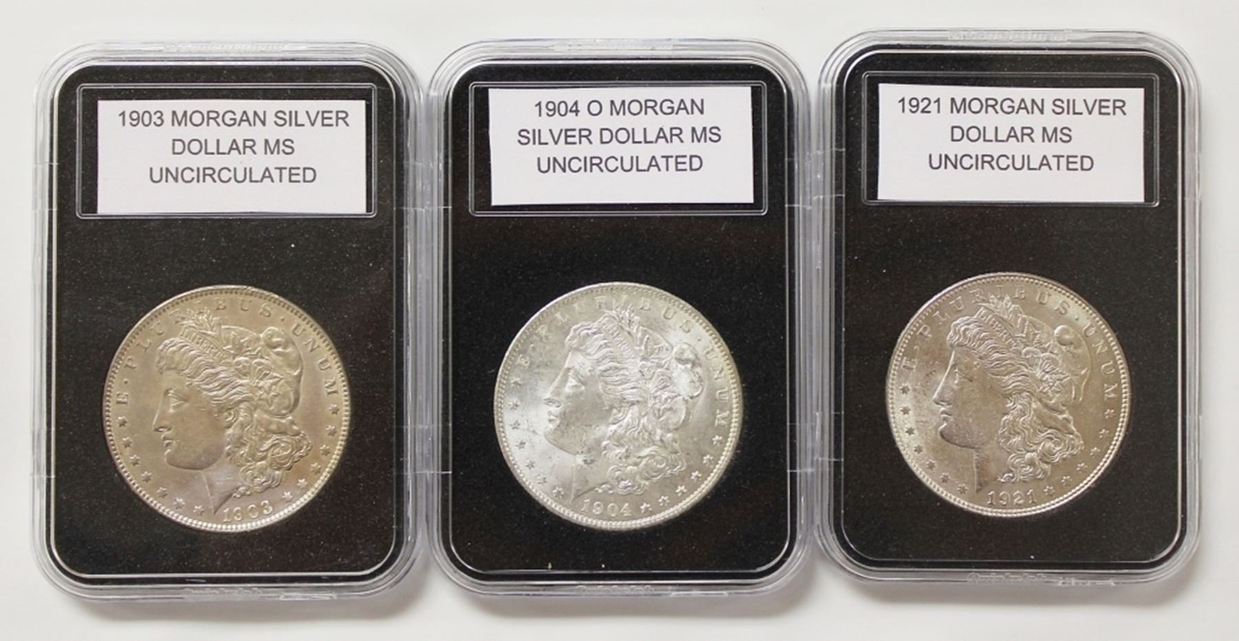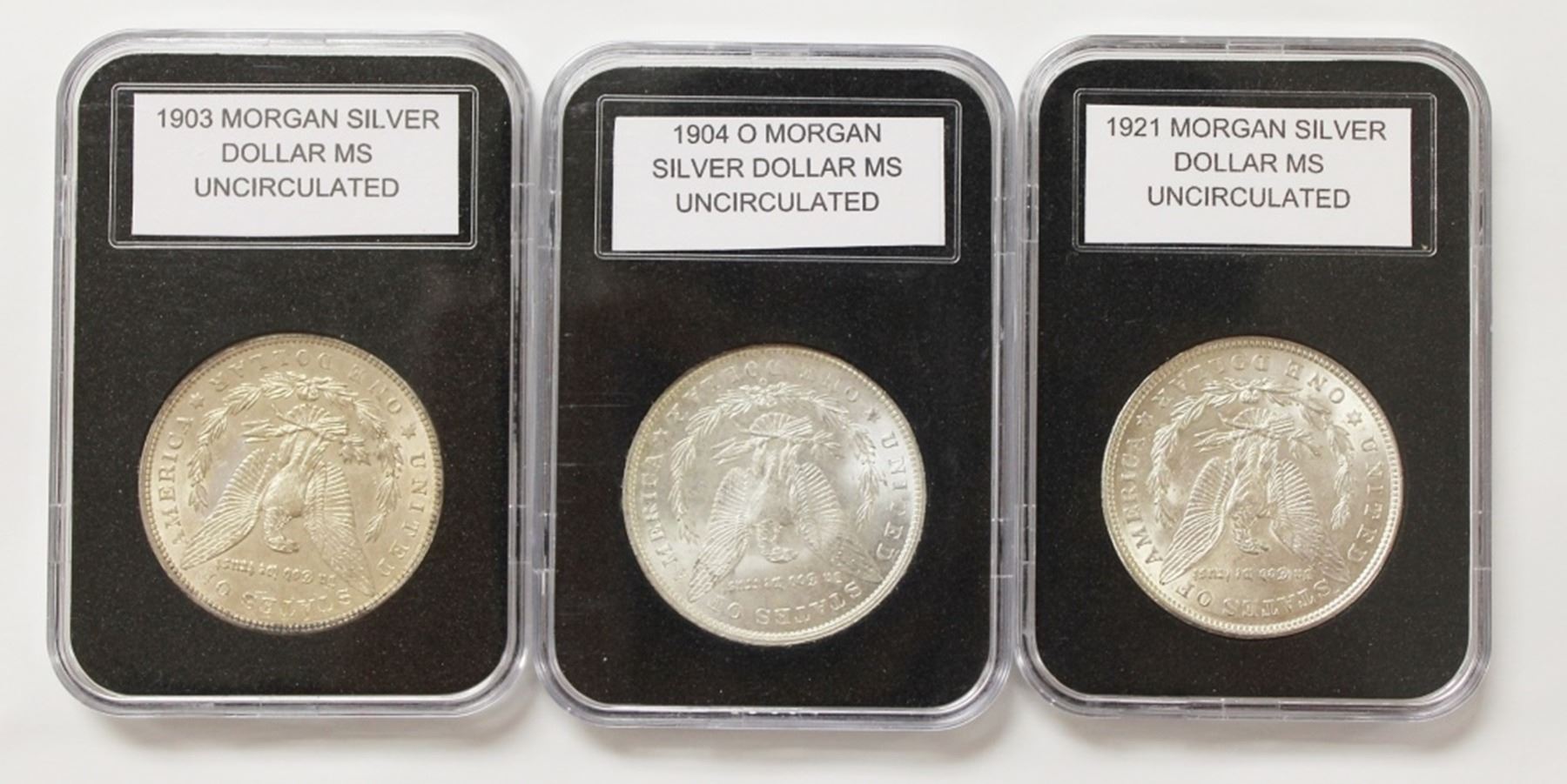 THREE MORGAN SILVER DOLLARS: