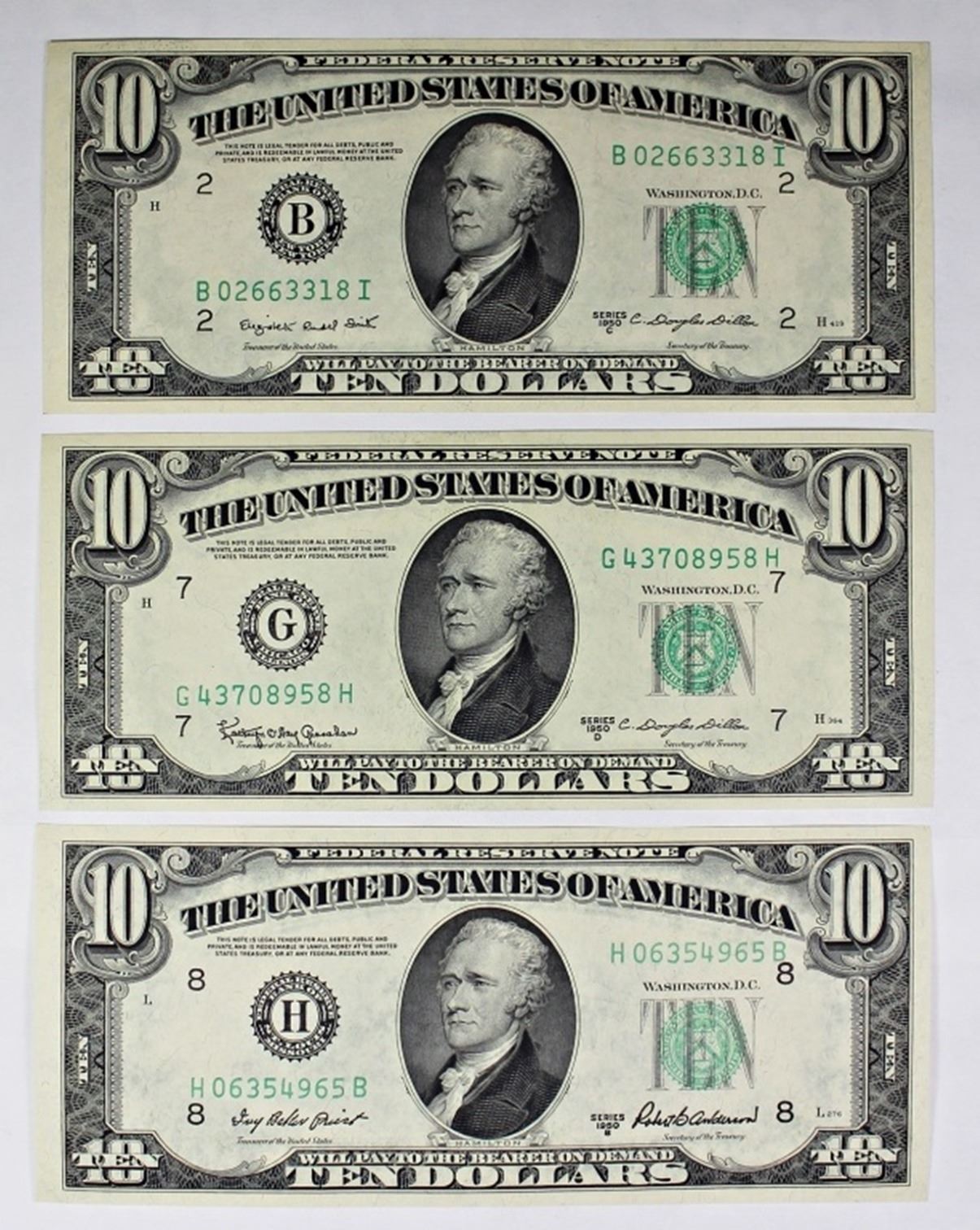 1950-B ST. LOUIS GEM UNC; 1950-C NEW YORK GEM UNC, AND 1950-D CHICAGO GEM UNC. ESTIMATE: $175-$200