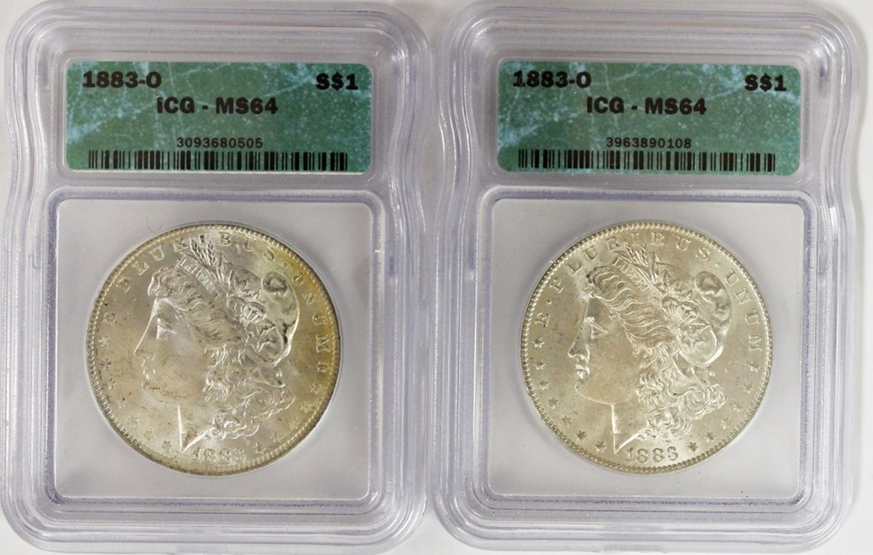 TWO 1883-O MORGAN SILVER DOLLARS
