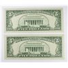 TWO 1974 $5.00 FEDERAL RESERVE STAR NOTES