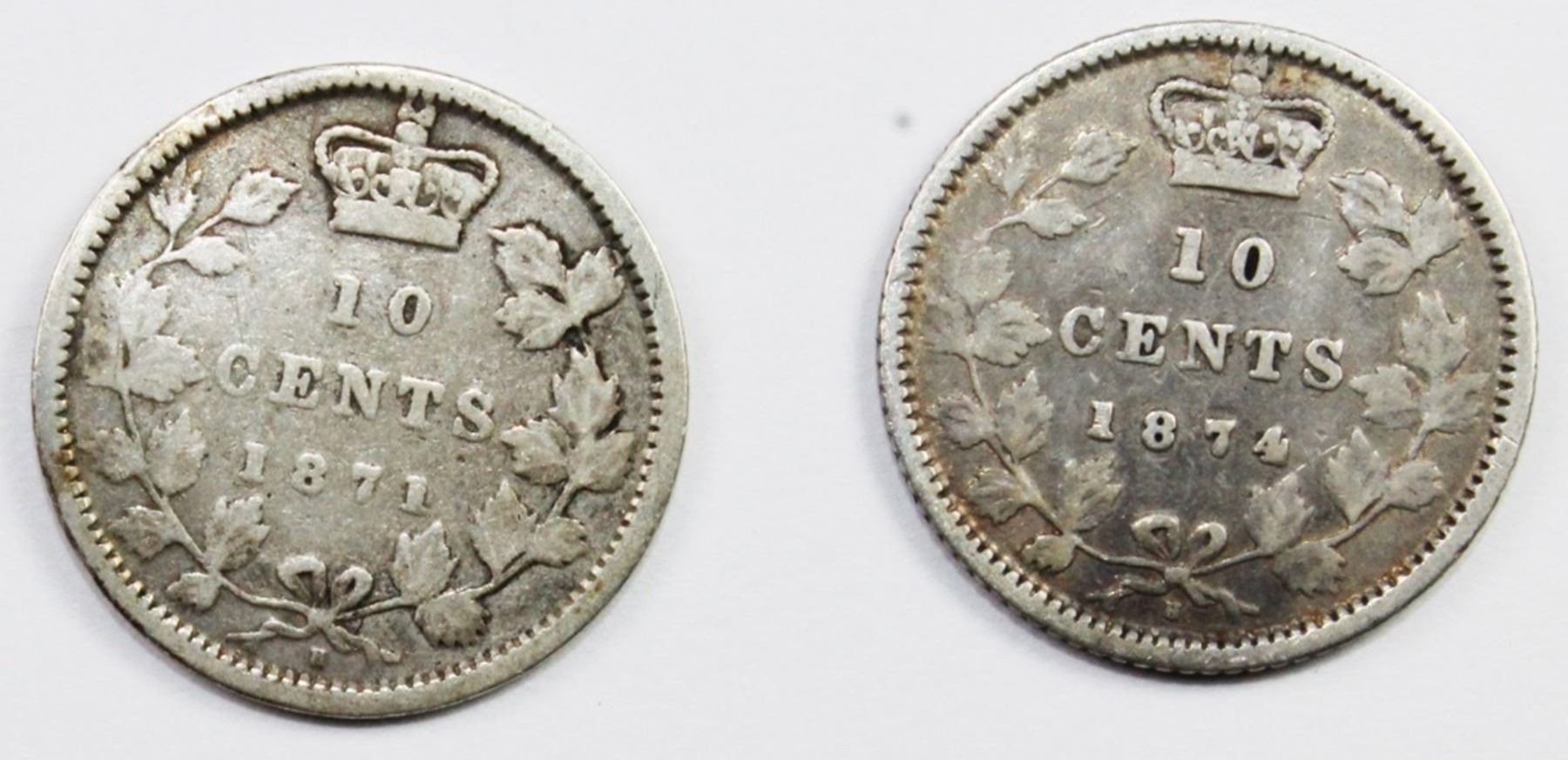1871-H VG AND 1874-H VF. ESTIMATE: $140-$165