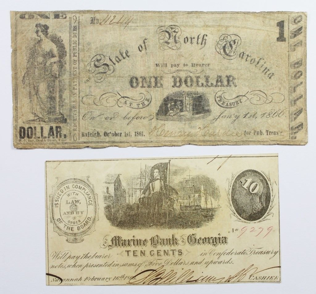 MARINE BANK TEN CENT XF AND STATE OF NORTH CAROLINA $1 FINE. ESTIMATE: $80-$100