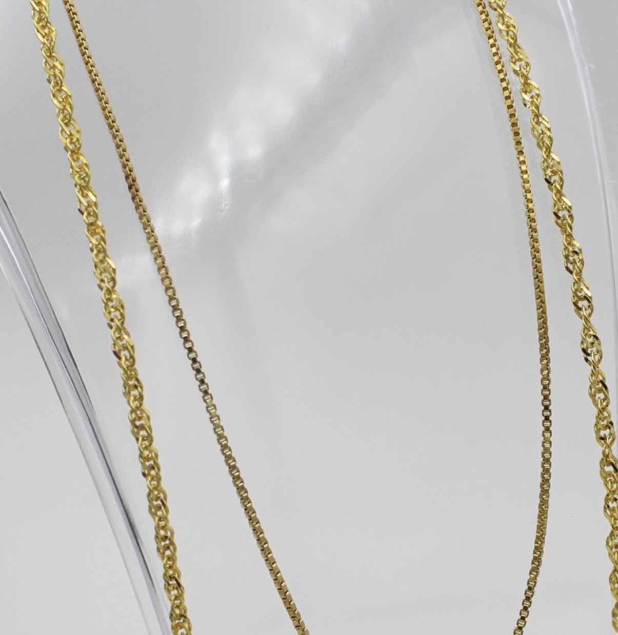 BOTH GOLD TONED WITH DIFFERENT CHAIN DESIGNS. 21.7 GRAMS TOTAL. PRE-OWNED. ESTIMATE: $50-$75