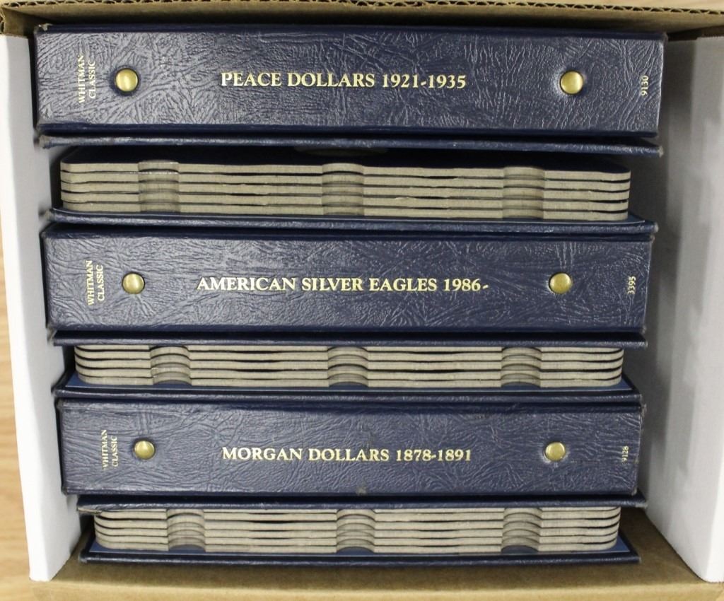 SILVER EAGLES, (2) SETS MORGAN DOLLARS, PEACE DOLLARS. 6 ALBUMS TOTAL. ESTIMATE: $20-$50