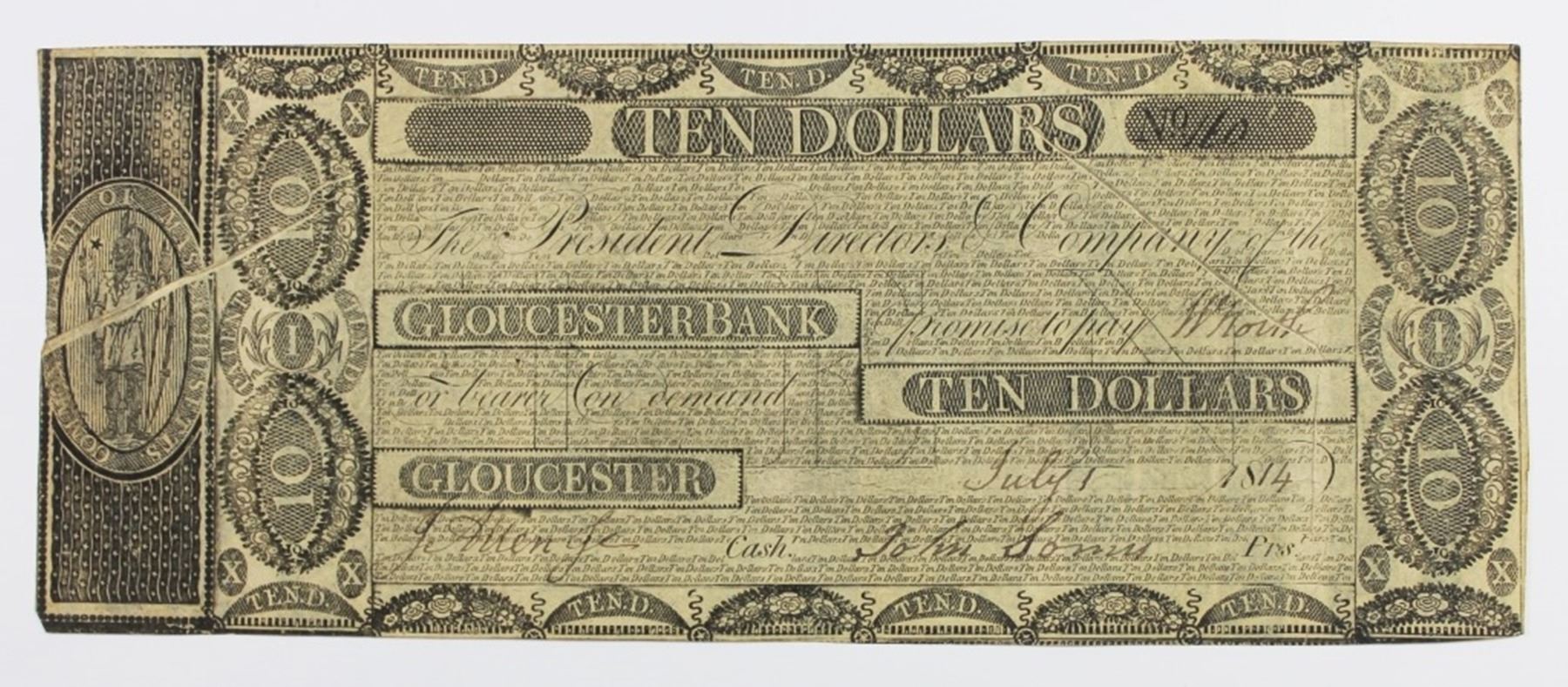 VERY SCARCE GLOUCESTER BANK $10 MASS.