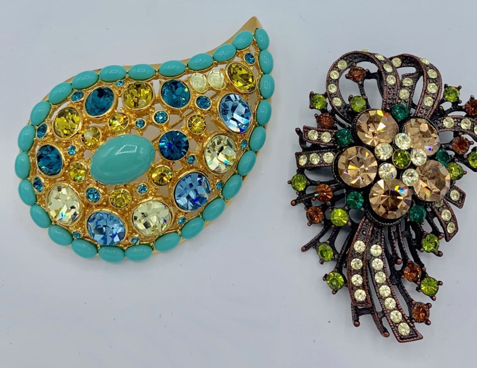 TEAR DROP PAISLEY PIN AND VINTAGE JOAN RIVERS FLOWER SPRAY PIN, ESTIMATE $75-$100