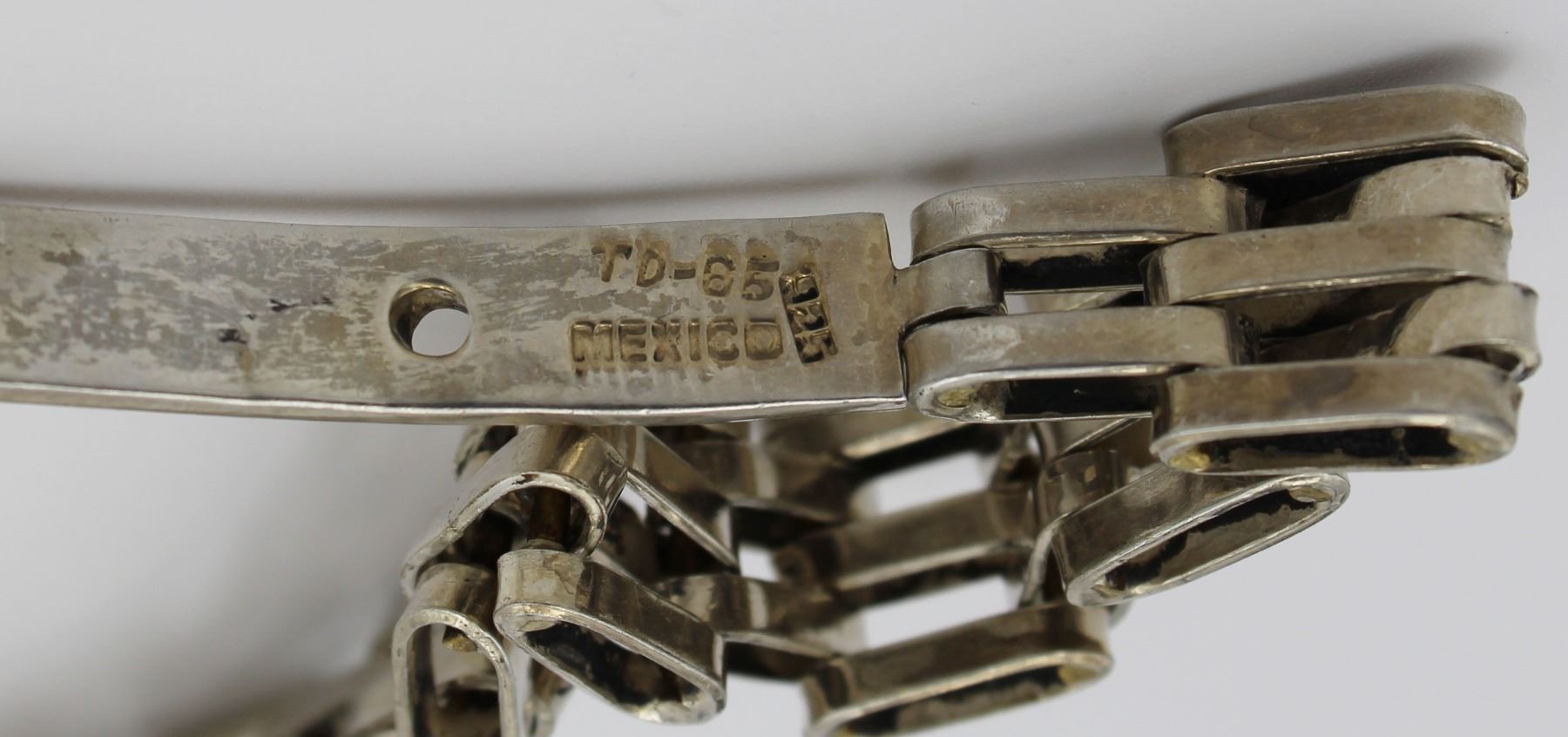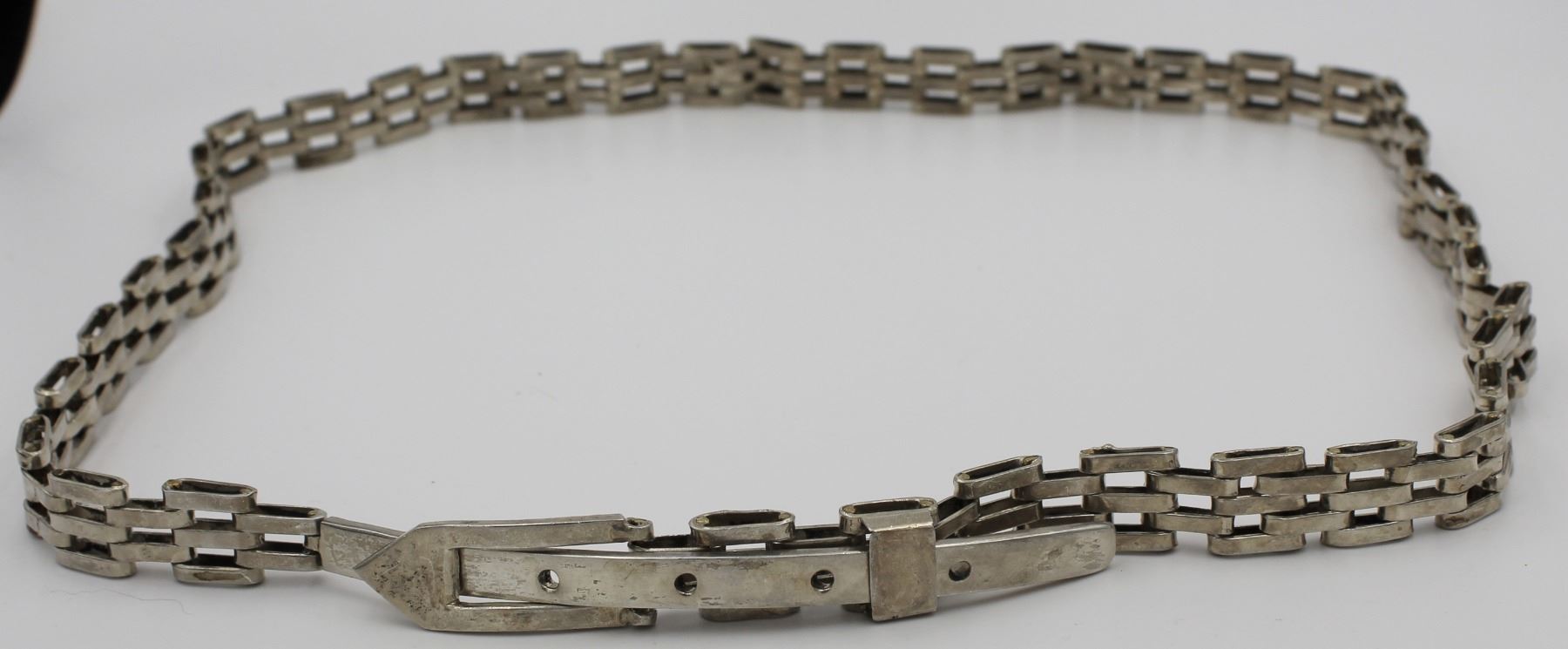 VINTAGE MEXICO .925 SILVER BELT. 35" LONG. PRE-OWNED. PIN BUCKLE CLOSURE. 153.4 GRAMS. ESTIMATE:$200-$300