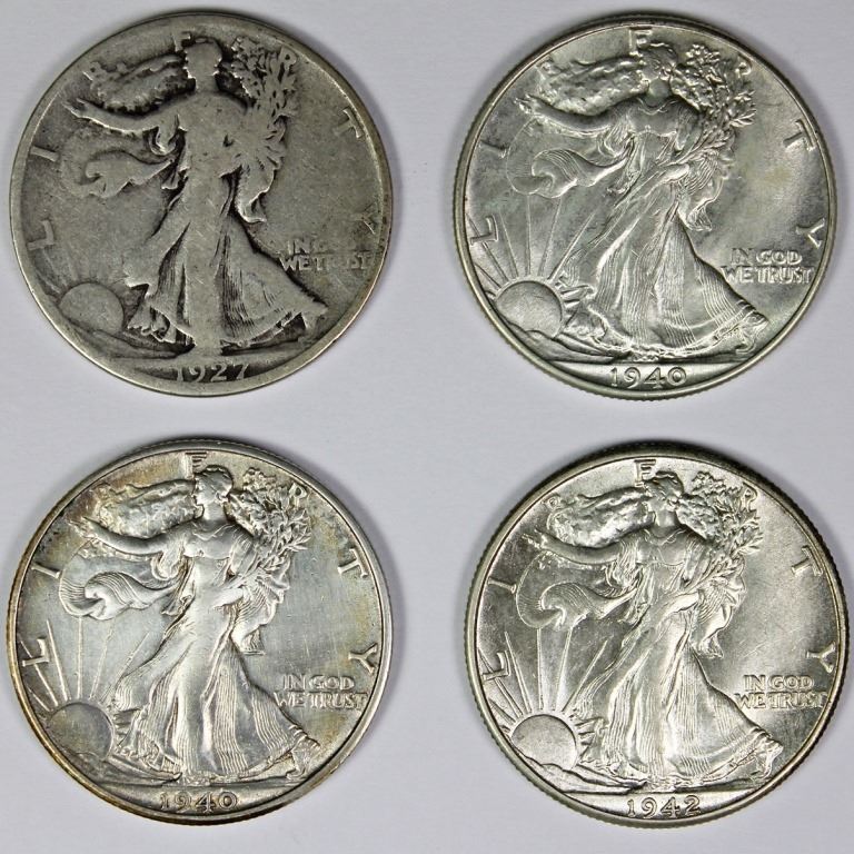 1940 CH BU, 1940-S AU, 1942 UNC, AND 1927-S VG. ESTIMATE: $115-$150