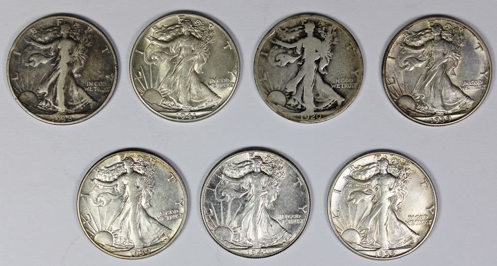 1920-S G, 1939 XF, 1939-D AU, 1941 UNC, 1939-D XF+, 1938 VF, AND 1941 CH BU. ESTIMATE: $155-$175