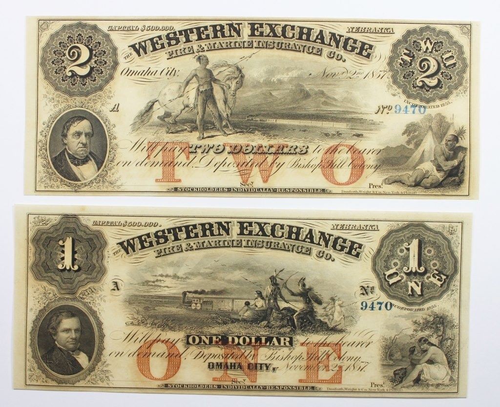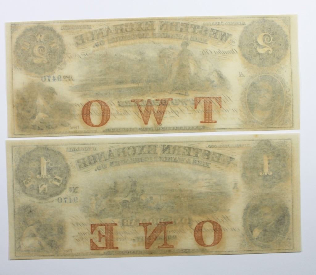 $1 AND $2. TWO NOTES TOTAL. GEM UNC. ESTIMATE: $350-$400
