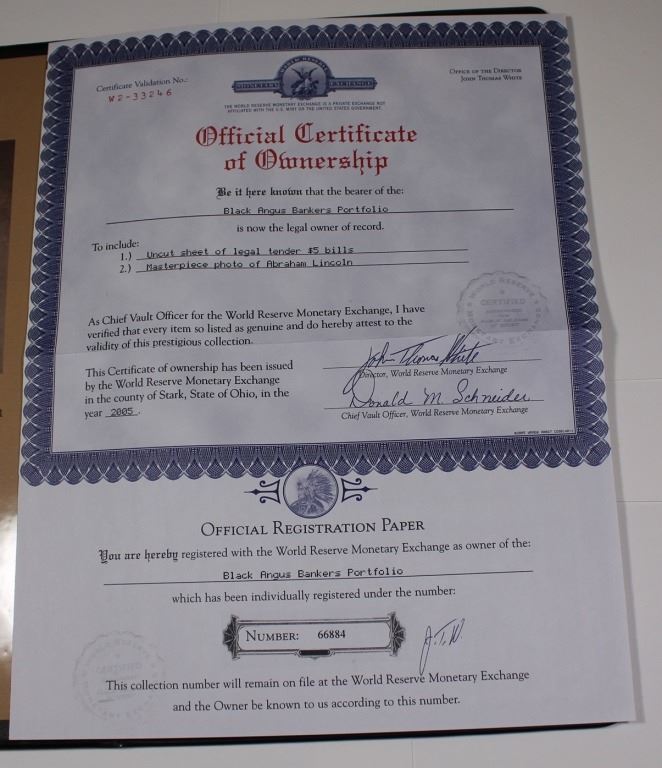 $5.00 1995 WITH COA AND BOOK. ESTIMATE: $85-$100